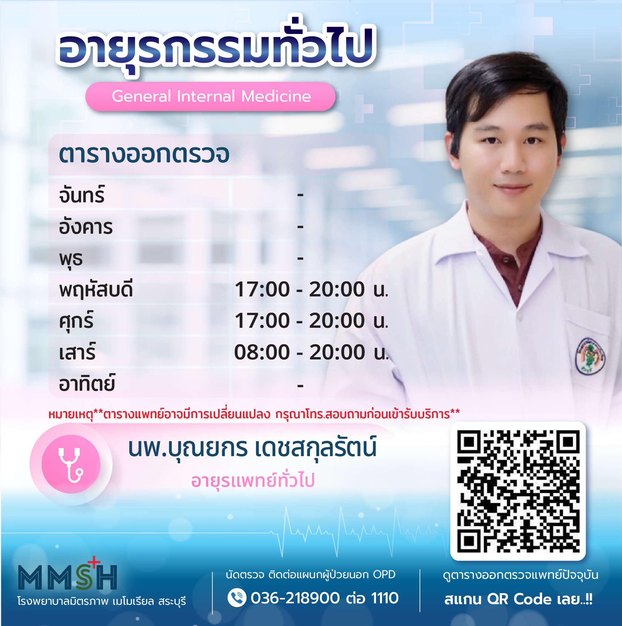นัดพบแพทย์ ติดต่อ 036 218 900 ถึง 11