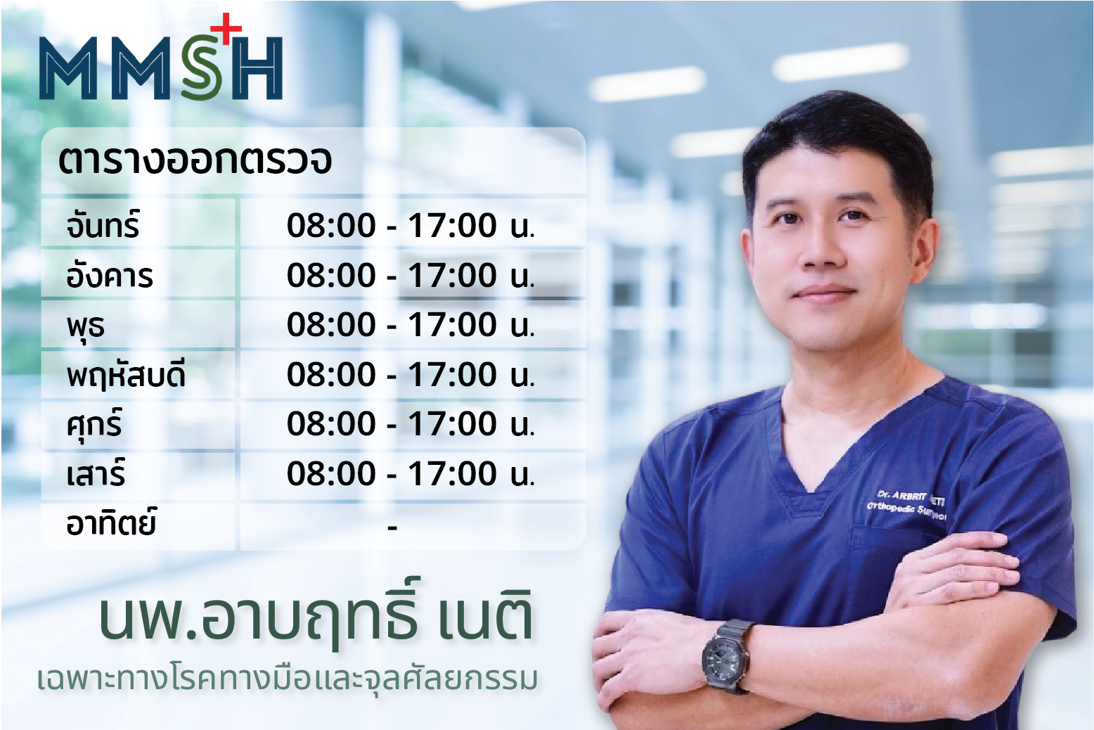 บริการให้คำปรึกษา ตรวจวินิจฉัย ให้การรักษาโรคที่เกี่ยวกับความผิดปกติของมือ แขน และข้อมือ เช่น โรคนิ้วล้อค การผ่าตัดซ่อมเส้นประสาทและเส้นเลือด ผ่าตัดก้อนถุงน้ำที่มือ รักษาพังผืดกดทับเส้นประสาท