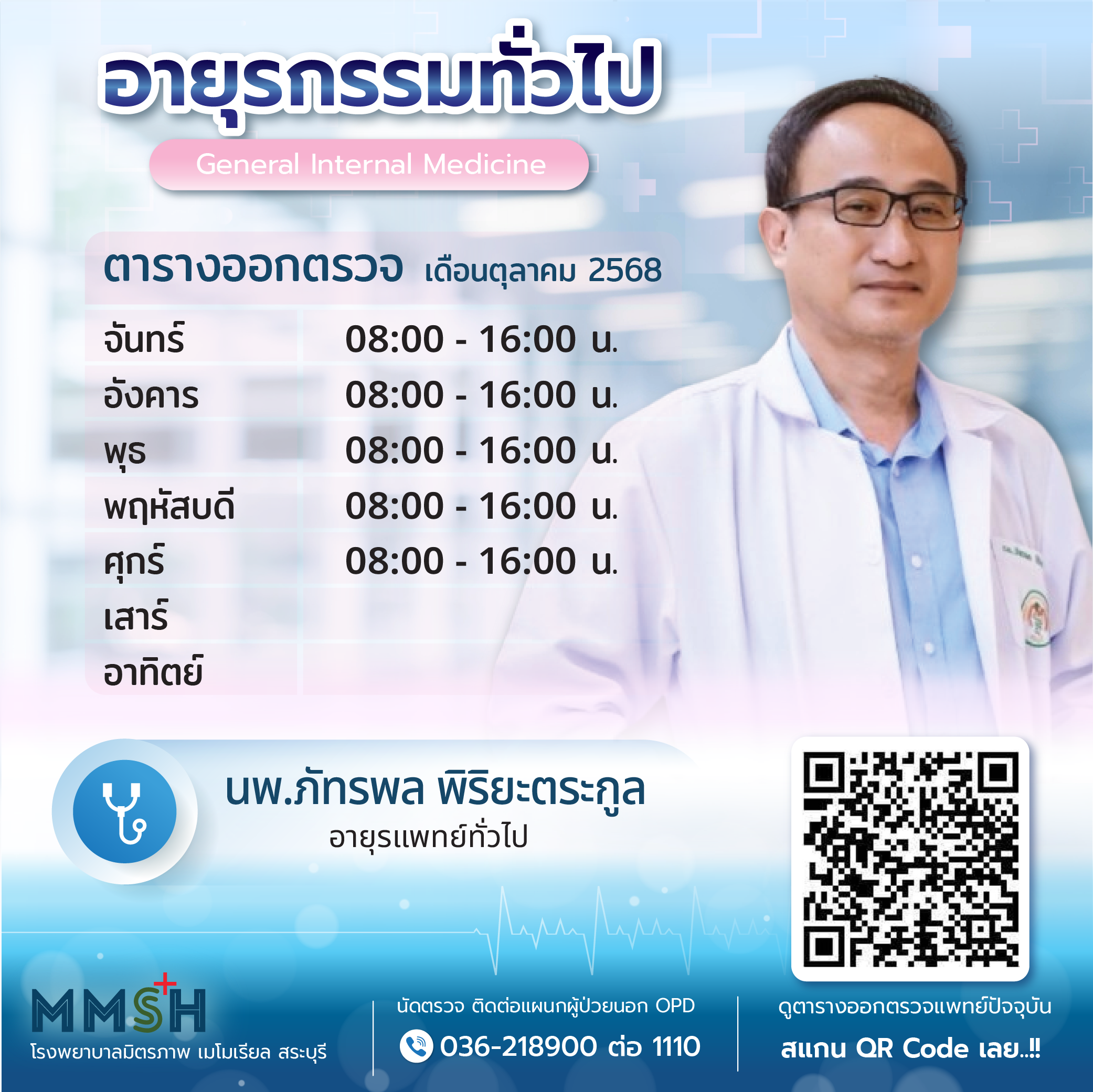นัดพบแพทย์ ติดต่อ 036 218 9000 ถึง 11 ต่อ 1110