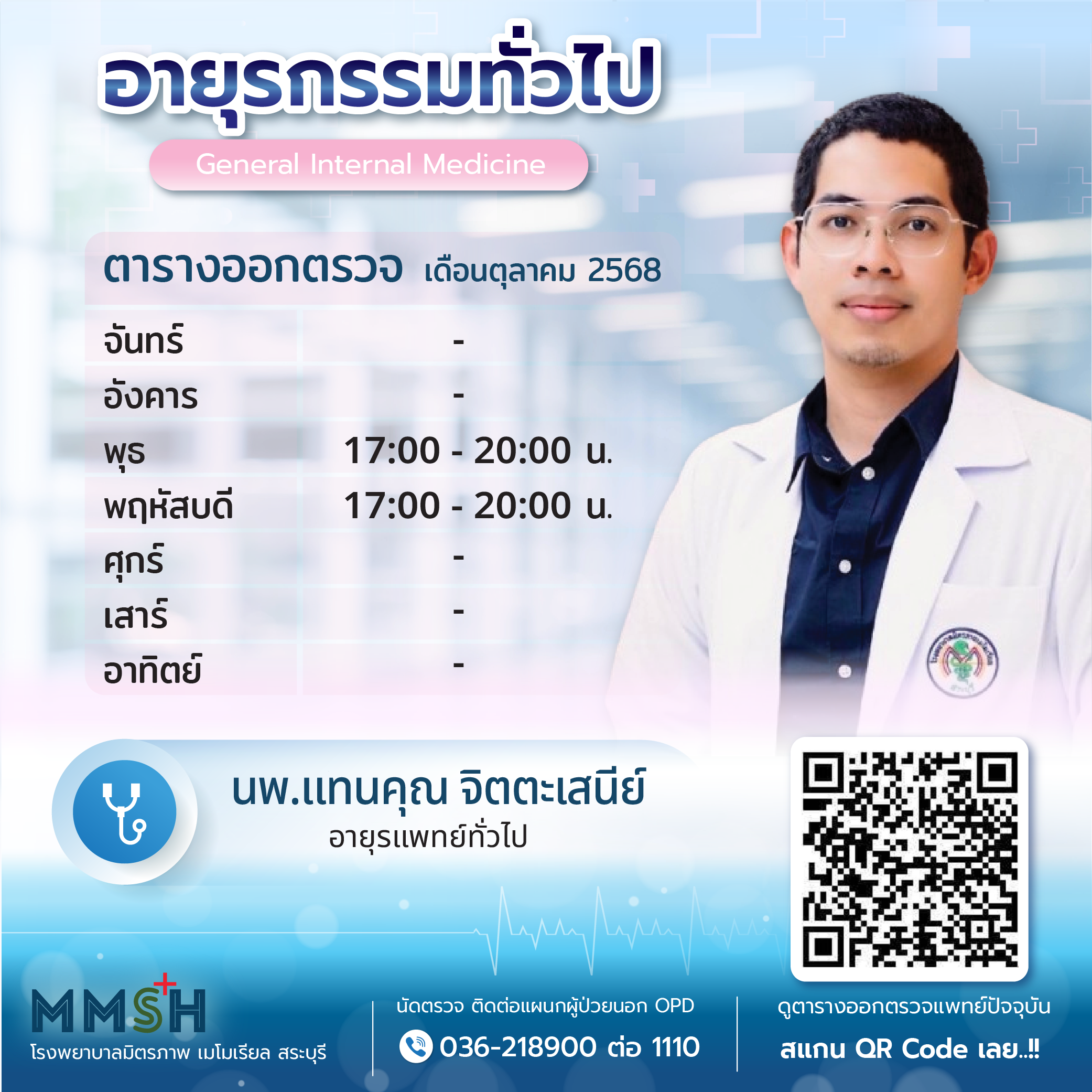 นัดพบแพทย์ ติดต่อ 036 218 9000 ถึง 11 ต่อ 1110