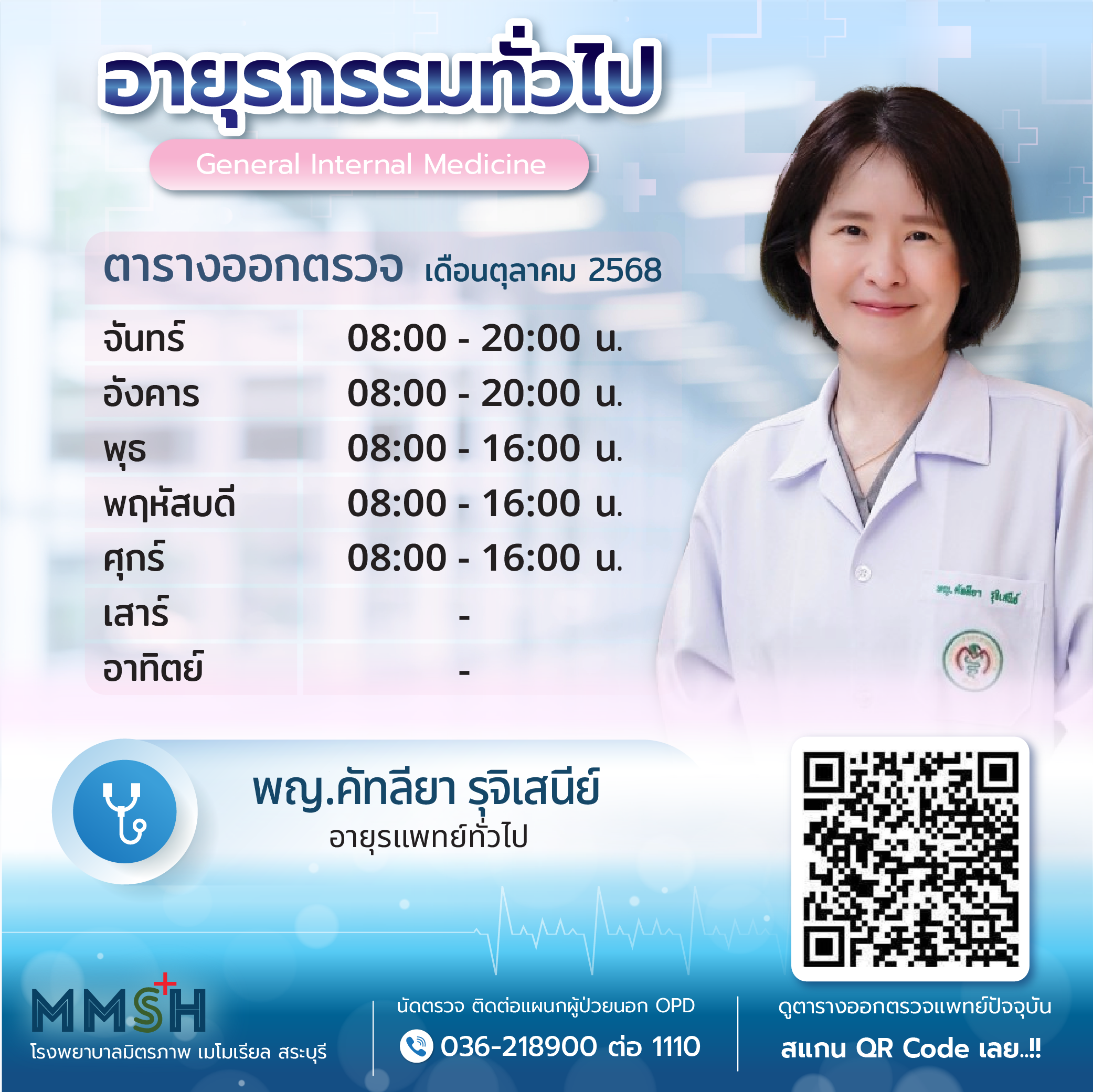 นัดพบแพทย์ ติดต่อ 036 218 9000 ถึง 11 ต่อ 1110
