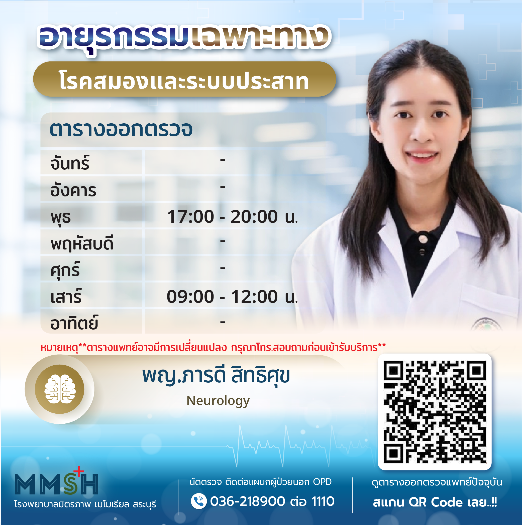 นัดพบแพทย์ ติดต่อ 036 218 900 ถึง 11
